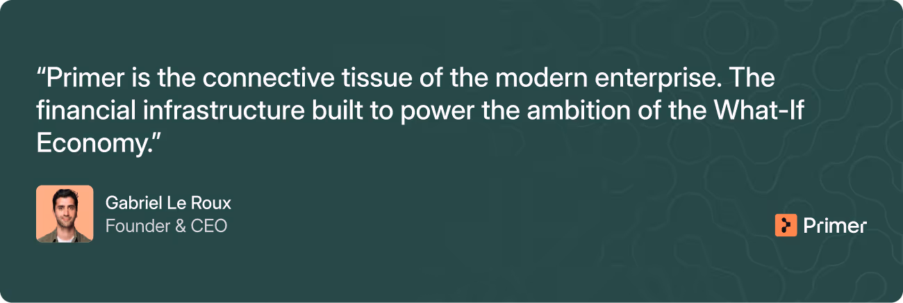 Primer is the connective tissue of the modern enterprise. The financial infrastructure built to power the ambition of the What-If Economy.