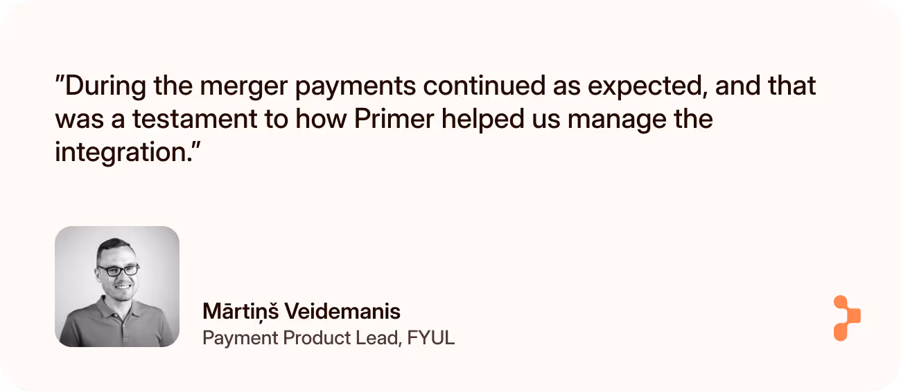 “The merger raised the bar for everything, including payments,” says Vitor Silva, Head of Engineering, Commerce & Production at FYUL. “With Primer, we already had infrastructure we trusted, and confidence it could scale with the business and support our broader objectives.”